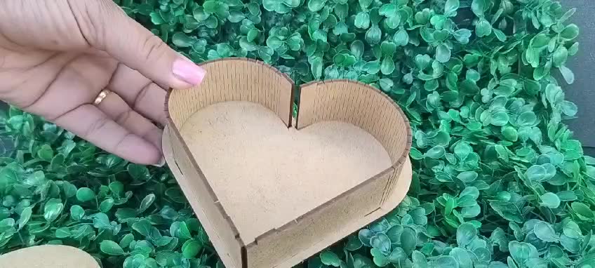 Linda caixa feita em MDF, em formato de coração para presentar alguém especial.
