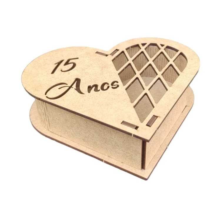 10 Caixas Coração 13 cm 15 Anos Lembrança, Presentes, MDF - Madeira