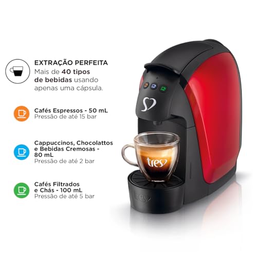 3 Corações TRES Cafeteira Espresso e Multibebidas Luna Vermelha - 110v