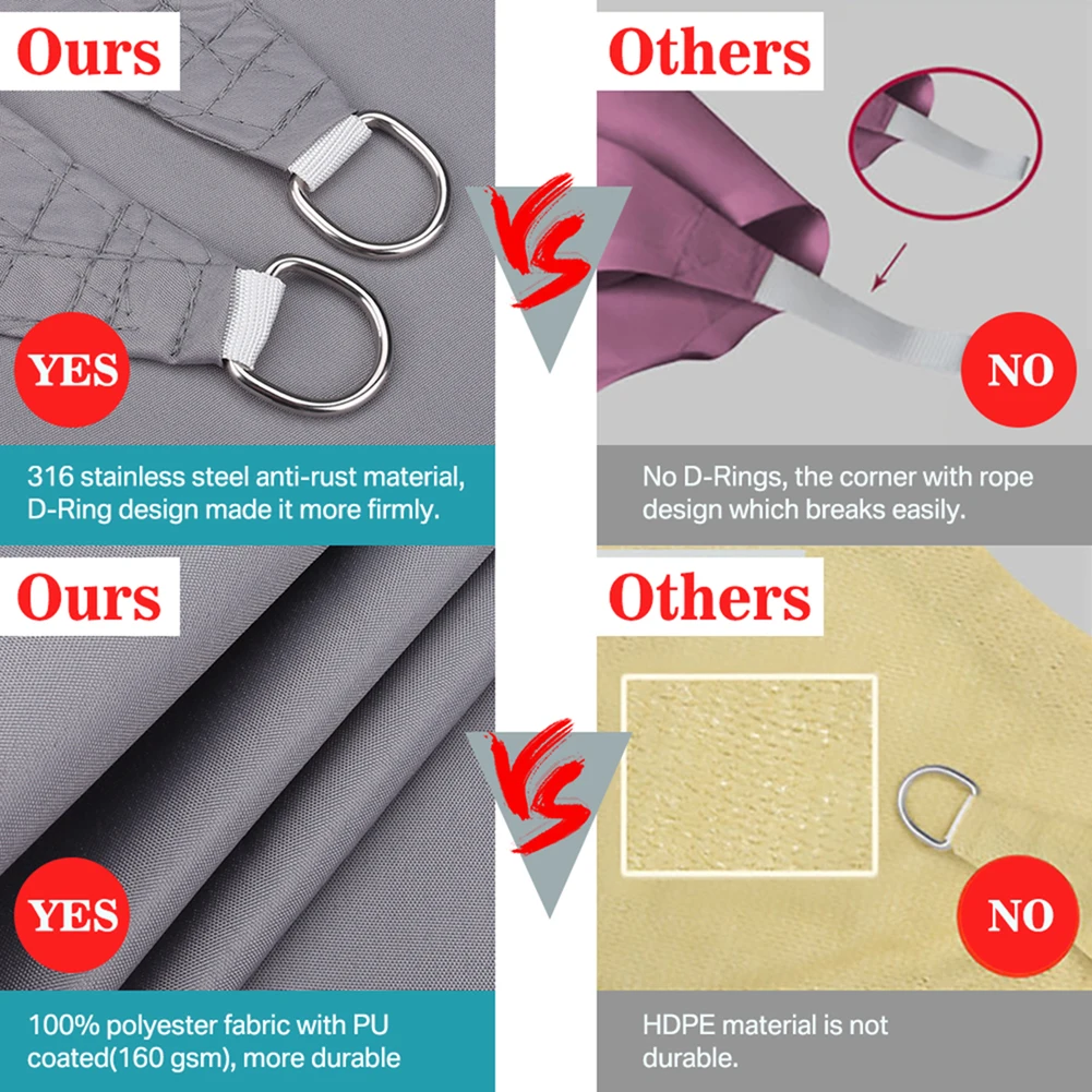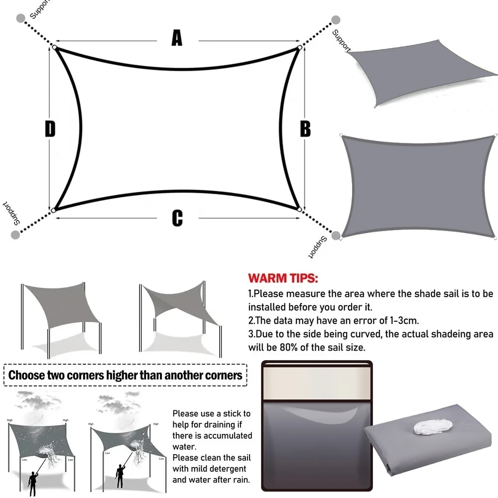 6 cores grande sombra de sol vela retângulo dossel à prova dwaterproof água sombra capa bloco uv para jardim pátio ao ar livre deck pérgula varanda tendas