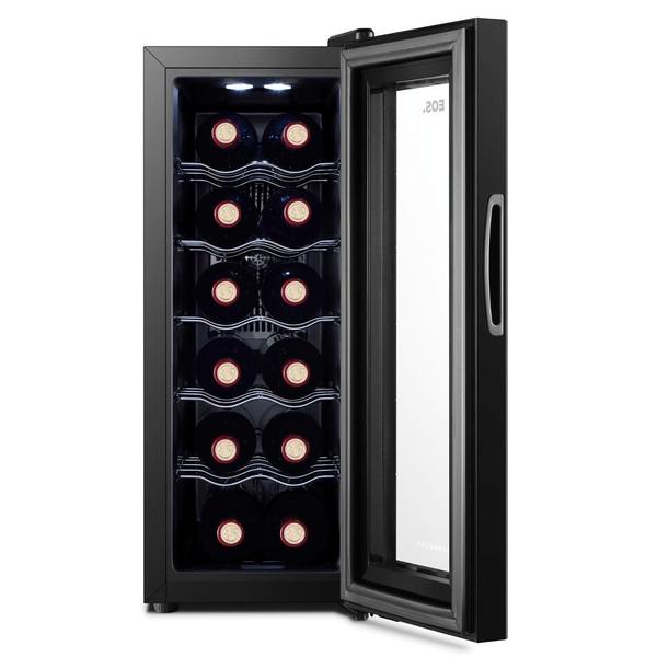 Apresento a você a adega climatizada EOS sommelier EAE12B, um produto de alta qualidade que oferece armazenamento seguro e elegante para até 12 garrafas de vinho.