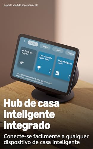 DESENVOLVIDO COM TECNOLOGIA E DESIGN — Smart display de 8,7" com design sofisticado, que combina uma tela HD touchscreen de cores vibrantes, com área de visualização 15% maior em comparação ao Echo Show 8 (3° Geração), alta performance e hub de casa inteligente integrado. Além disso, suas músicas e programas favoritos terão um som incrível com o áudio espacial envolvente.