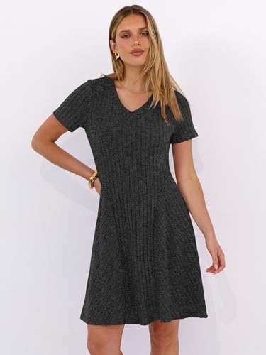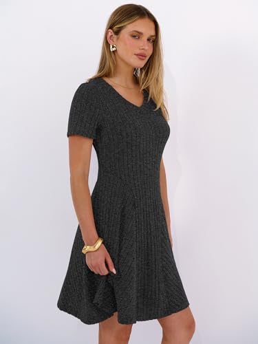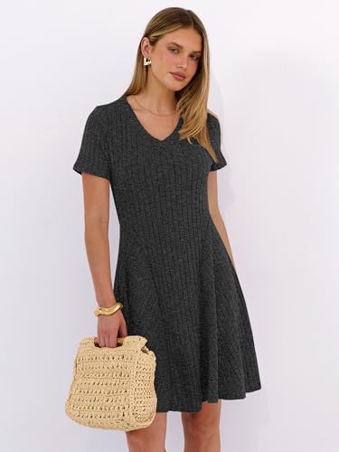 ANRABESS Vestido feminino casual de verão manga curta com nervuras e gola V rodado evasê 2026 primavera férias túnica vestido curto