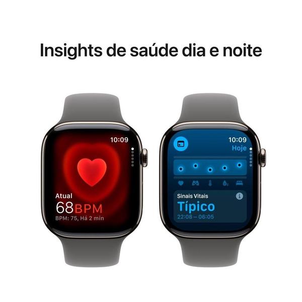 - Apple Watch Series 10 GPS + Cellular Caixa natural de titânio – 46mm Pulseira esportiva cinza-pedra – M/G