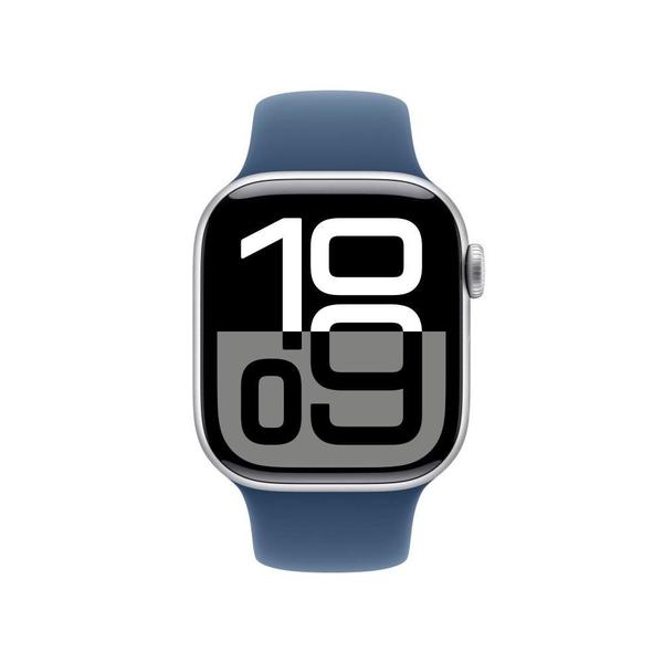 - Apple Watch Series 10 GPS + Cellular Caixa prateada de alumínio – 42mm Pulseira esportiva denim – P/M