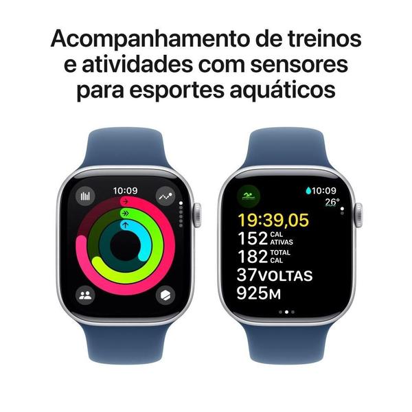 Apple Watch Series 10 GPS + Cellular, Caixa Prateada de Alumínio de 46 mm, Pulseira Esportiva Denim, Tamanho M/G - MWY13AM/A