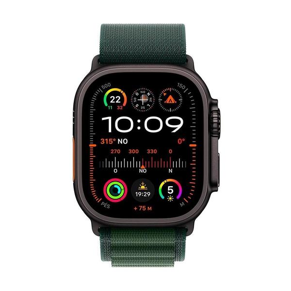 Apple Watch Ultra 2 GPS + Cellular, Caixa Preta de Titânio de 49 mm, Pulseira Loop Alpina Verde Escura, Tamanho M - MX4R3BE/A