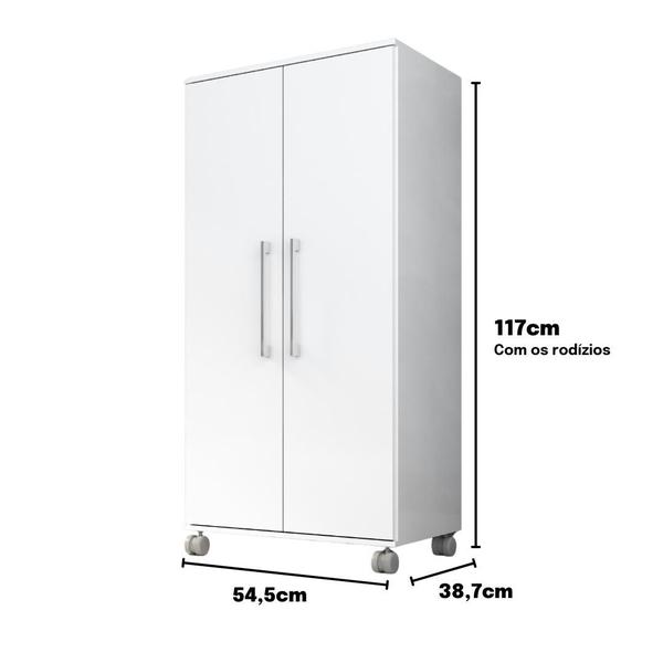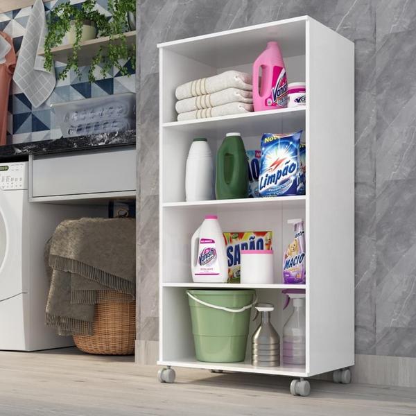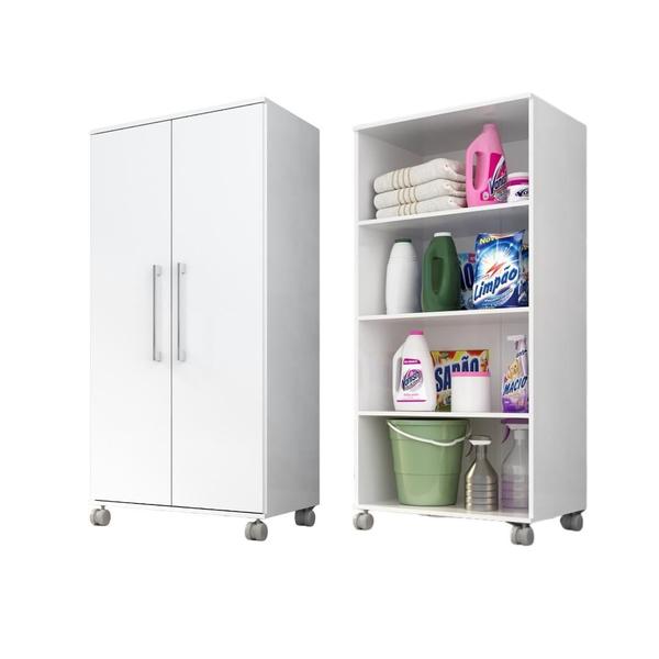 Armario Lavanderia Michele 2 Portas 4 Prateleiras 1,10m Com Rodinhas - Tonielque Móveis