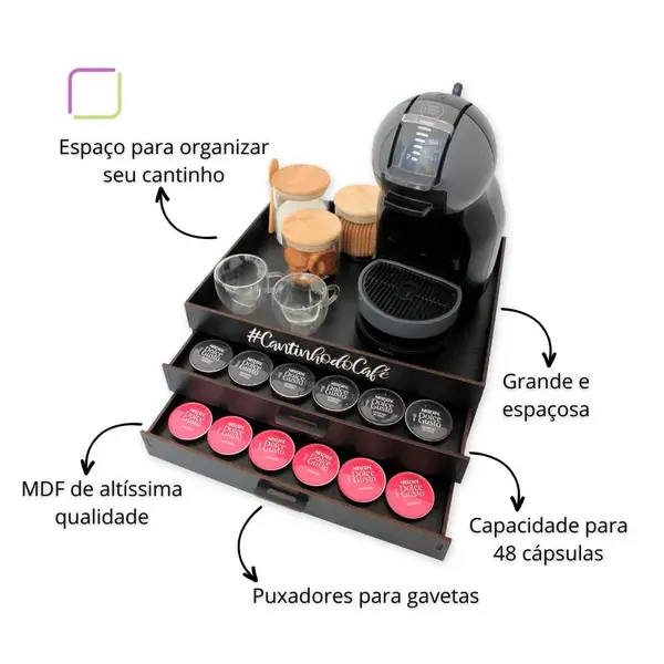 - melhor bandeja porta cápsula dolce gusto organizadora café mdf cantinho do café 2 gavetas 48 cápsula