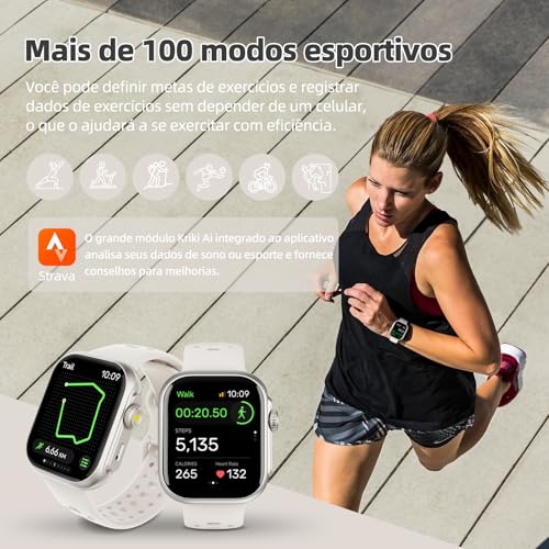 Tela HD de 1,85 polegadas e mostradores personalizáveis: Este smartwatch é compatível com sistemas Android e iOS. A tela touchscreen TFT-LCD de 1,85 polegadas possui resolução de 240*280, proporcionando uma experiência visual nítida e de alta resolução, além de uma interação suave ao toque, facilitando o uso. Além disso, você pode escolher entre mais de 200 mostradores ou criar seu próprio design personalizado usando suas fotos favoritas. Personalize a aparência para refletir seu estilo ou humor, desfrute de um novo design todos os dias e transforme seu relógio em um acessório verdadeiramente personalizado.