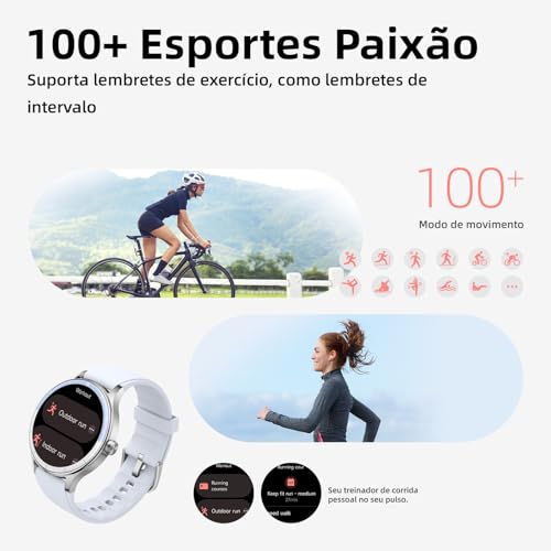 Mais de 100 Modos Esportivos e Multifuncionais: Incluindo corrida, ciclismo, basquete, ioga e natação, este smartwatch oferece suporte aos seus objetivos de condicionamento físico. Recursos adicionais incluem alertas de chamadas, atualizações meteorológicas, pedômetro, reprodução de música e calculadora. Seja para exercícios ou para a conveniência diária, este smartwatch aprimora seu estilo de vida.