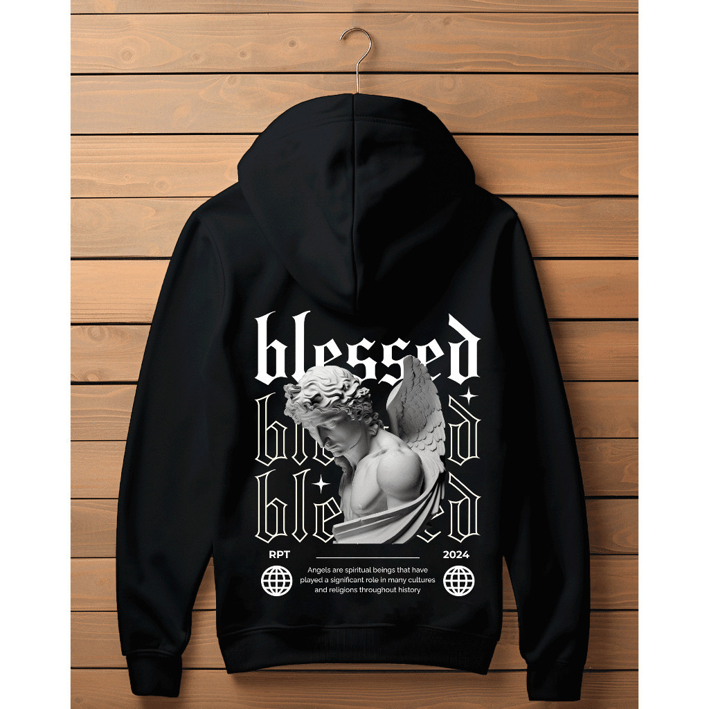 Blusa de Moletom Masculino Respect Blessed Angel Canguru Streetwear Lançamento 2024 Envio Imediato