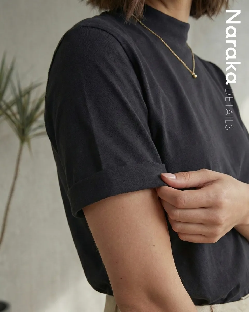 - Blusa Gola Alta, Blusinha Básica, Lisa, 100% Algoão, Manga Curta, Casual, Trabalho, Preta, Branca, Verde, Laranja, Presente de Natal, Ano Novo, Reveillon
