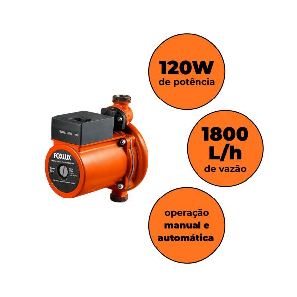 Bomba DÁgua Pressurizadora 127V 120W Foxlux 9mca com Fluxostato Automático para Chuveiro e Torneira