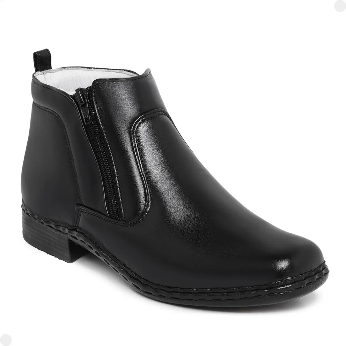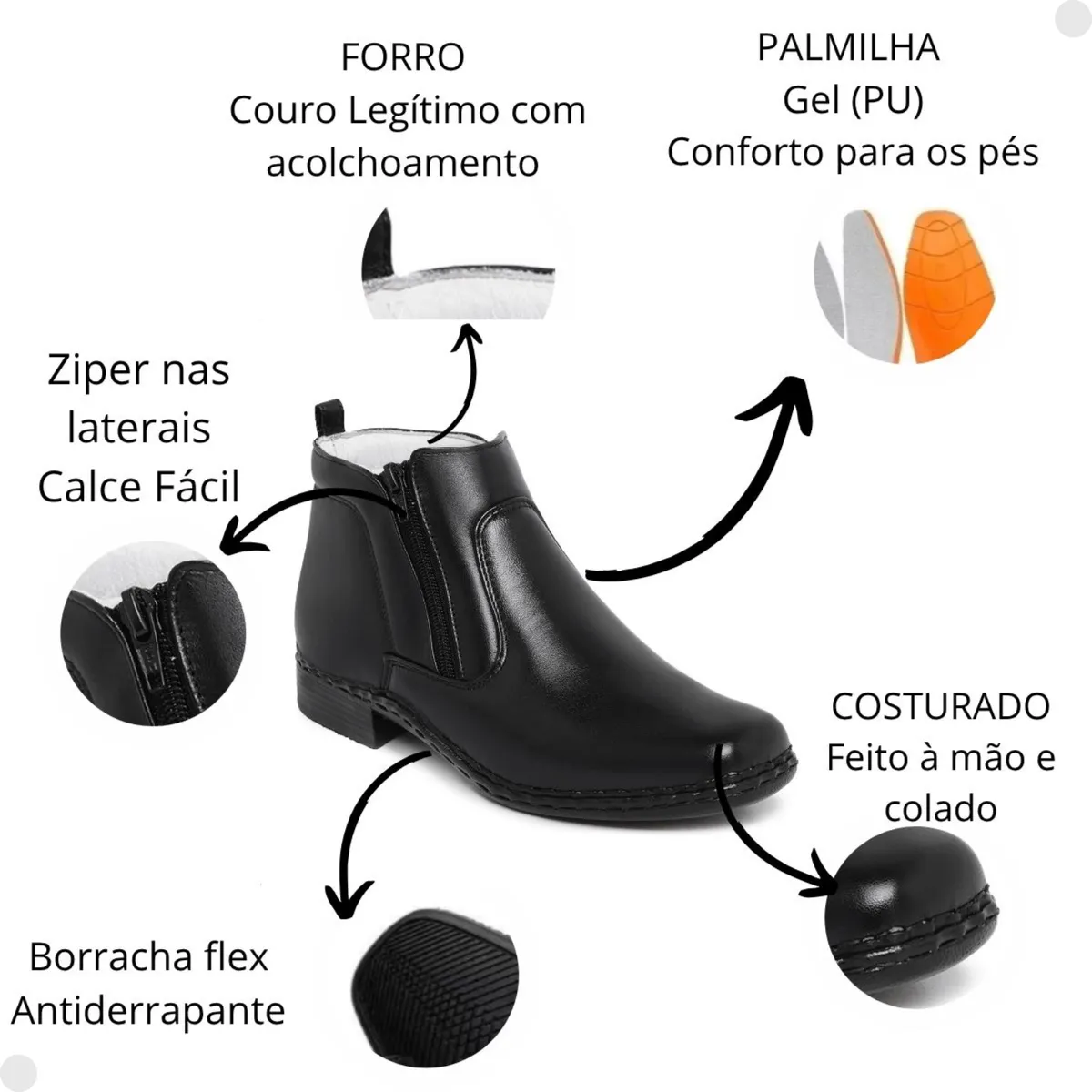 Bota Antiestresse Botina Ortopédica Palmilha Gel Zíper Couro Pelica Solado Costurado.