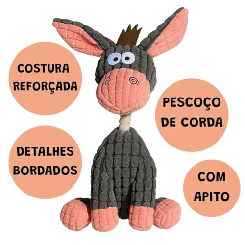 Seu melhor amigo merece o melhor! O burrico de pelúcia com corda é macio, resistente e perfeito para brincar, morder e aconchegar. Ele alivia o tédio e fortalece o vínculo entre você e seu pet.