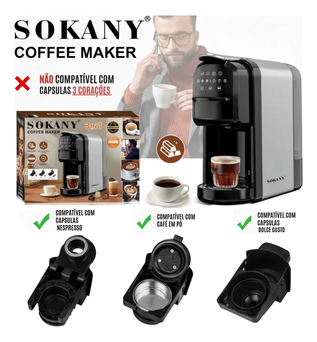 NÃO é compatível com cápsulas 3 corações