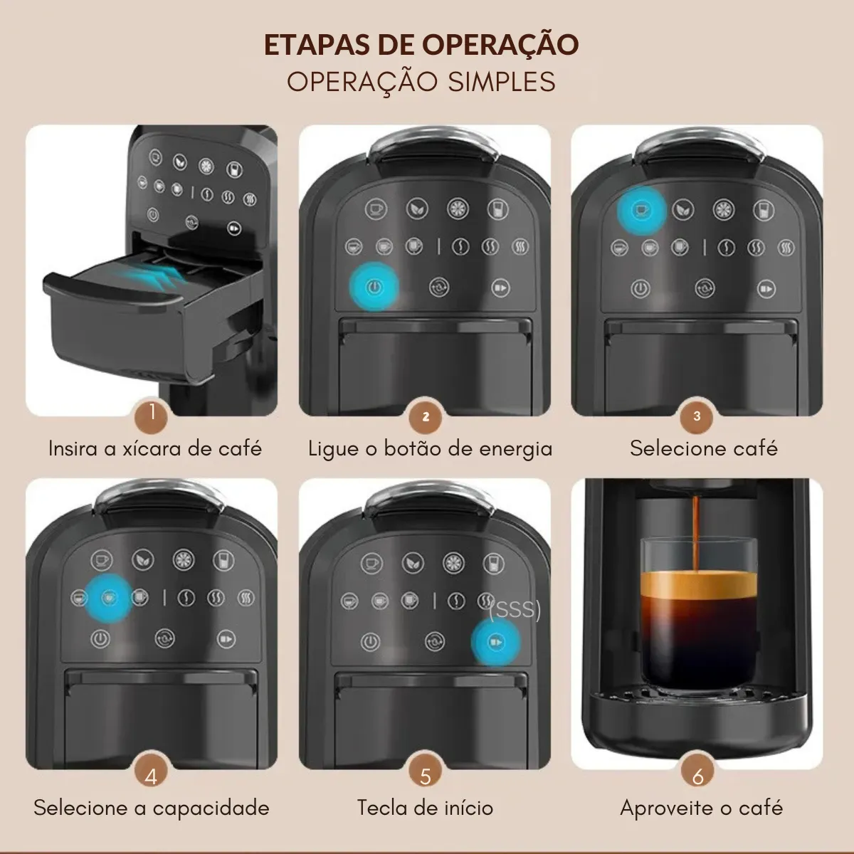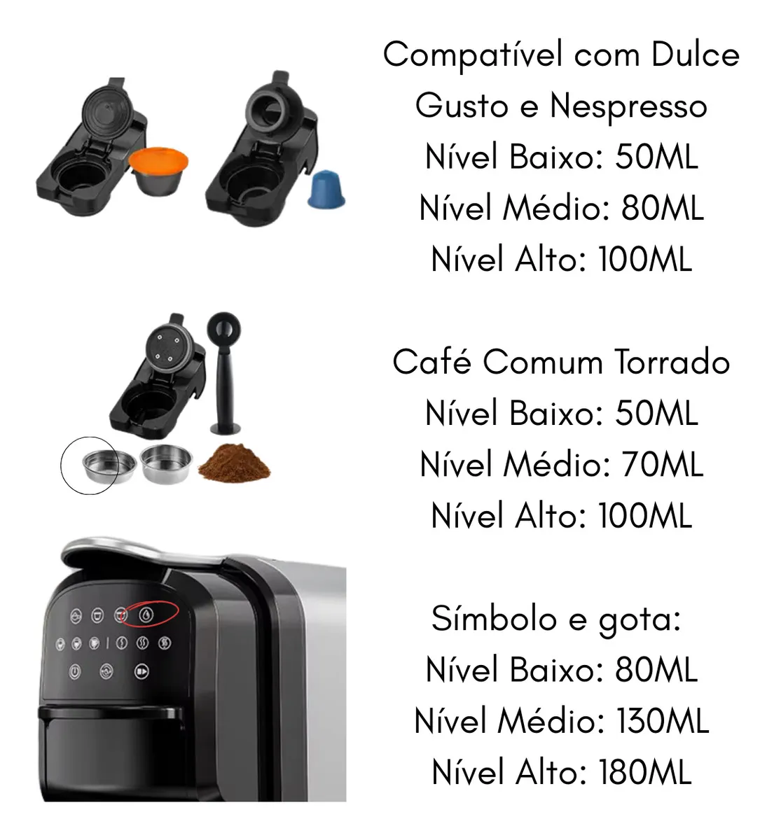 Cafeteira compatível com Dolce Gusto, Nespresso e Café Comum torrado em pó