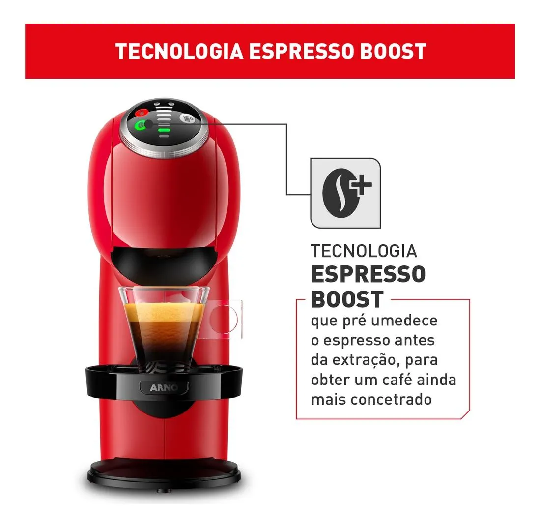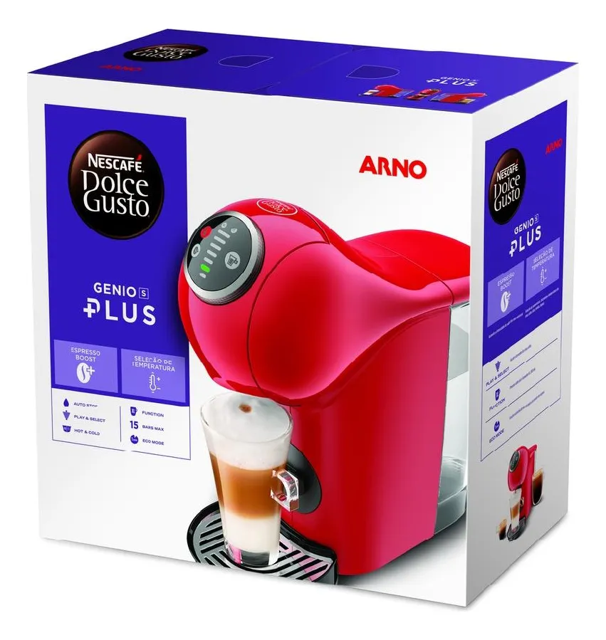 A NESCAFÉ® Dolce Gusto® Genio S Plus Vermelha da Arno é uma máquina MULTI-BEBIDAS capaz de preparar mais de 30 tipos de bebidas em cápsulas. Com ela, é possível fazer um cremoso café Espresso, um Chococcino quentinho ou até um chá gelado de forma simples e rápida.