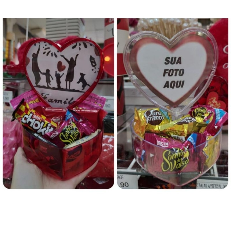 Caixa Coração Acrílico 13x13 01 UN. Caixa Coração Porta Retrato Bombom Presente Dia dos Namorados