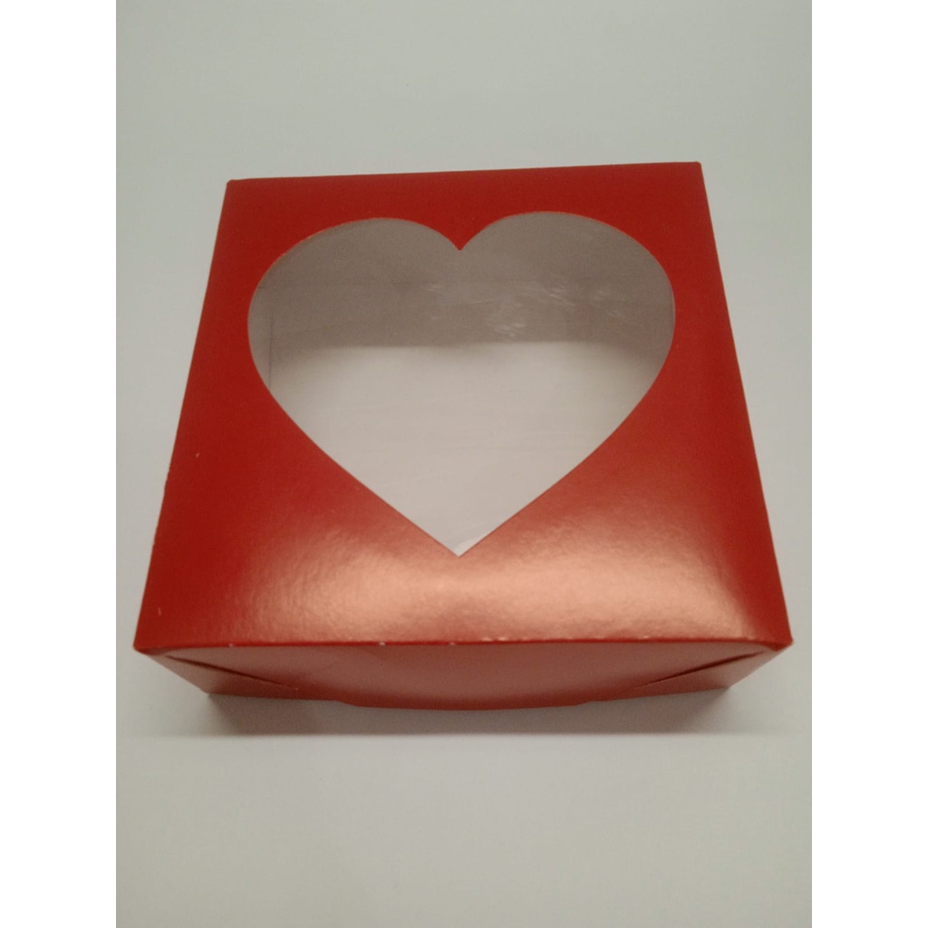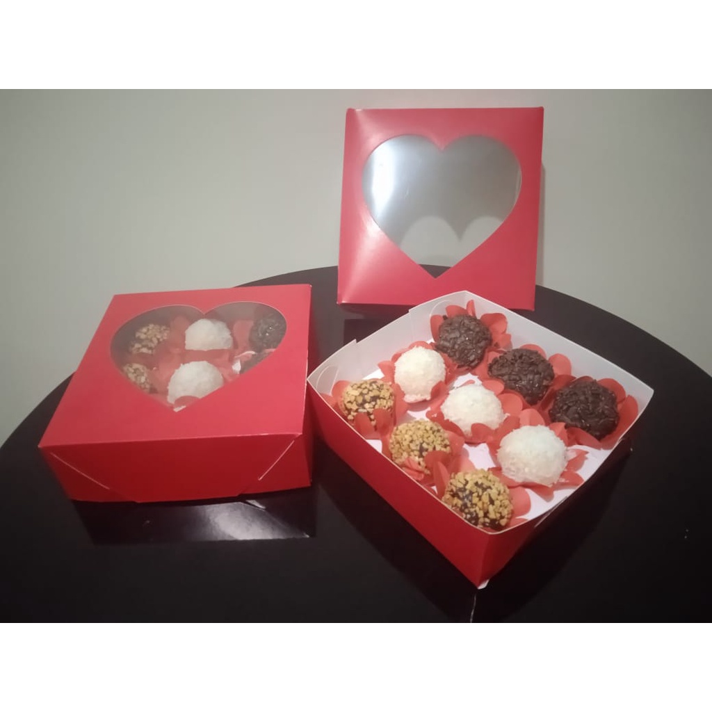 caixa coração com visor presentes e doces 15x15x5cm 30/20/10 un