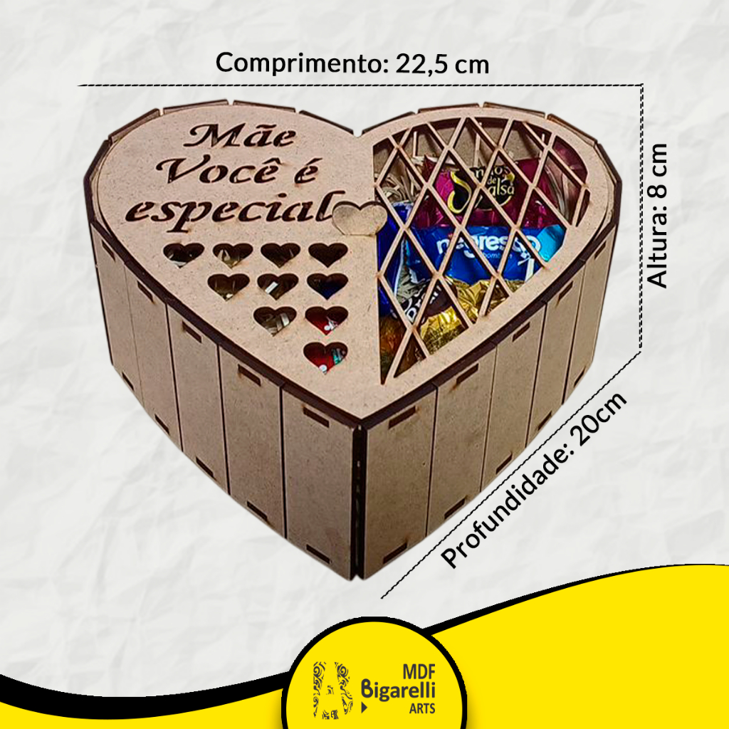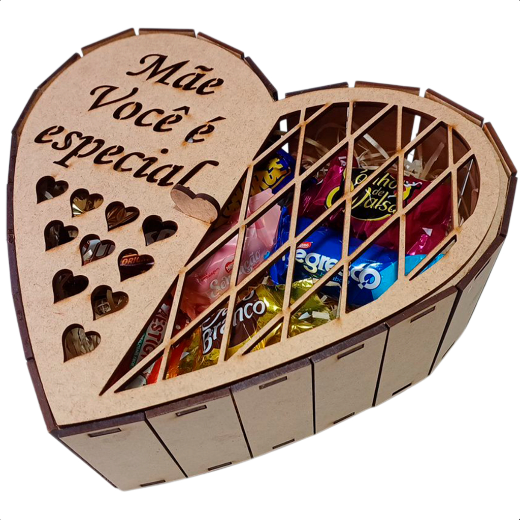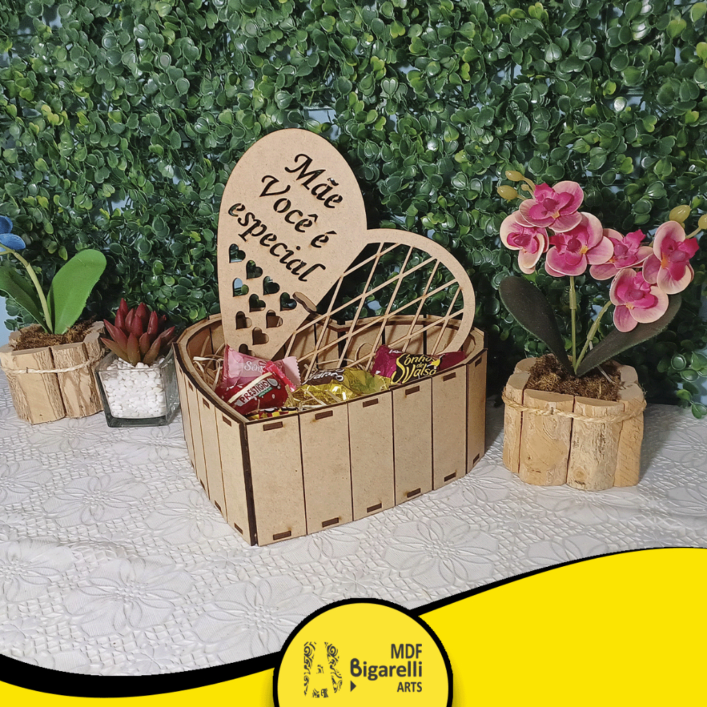 Caixa P/ Presente Coração Mdf Dia das Mães Bombom Cesta
