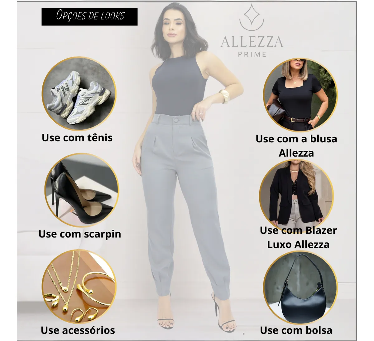 - Calça Alfaiataria Feminino Cintura Alta Cenoura Jogger Social Esporte Tedencia Elegante Fim de Ano Natal Ano Novo