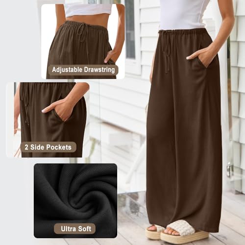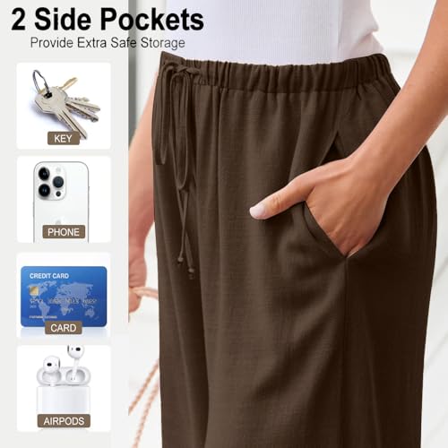 Calça feminina de algodão e linho Palazzo – Calças largas de verão com bolsos