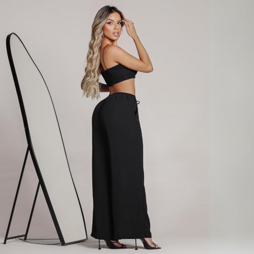 Calça Feminina Pantalona Cintura Alta Cós Largo Duna