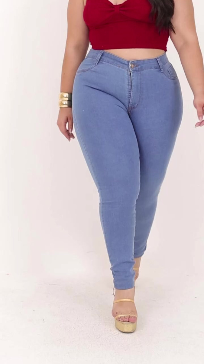 Calça Jeans Plus Size Cintura Alta Elastano Lycra Modeladora
