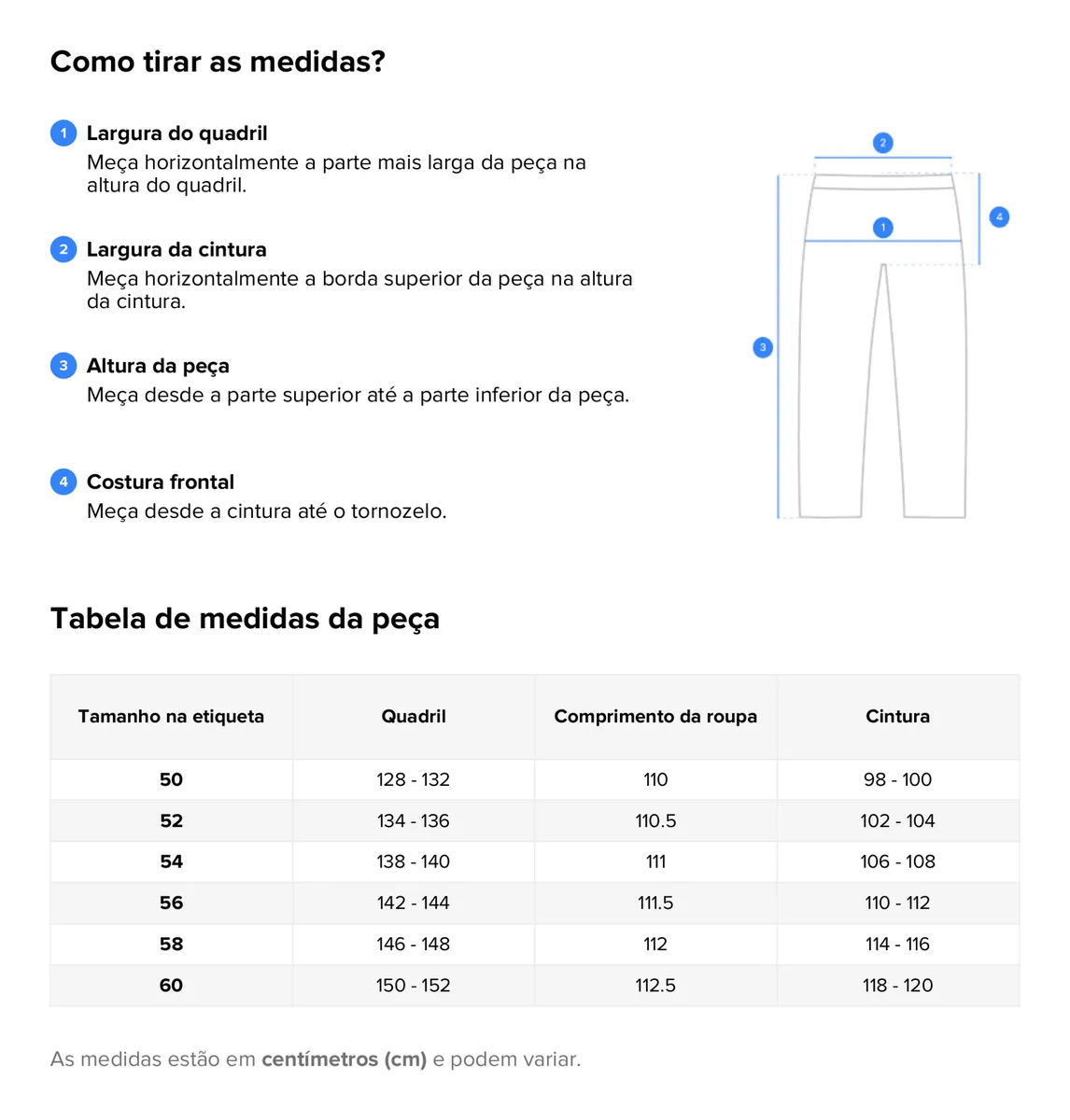 Confirme suas medidas nas imagens!