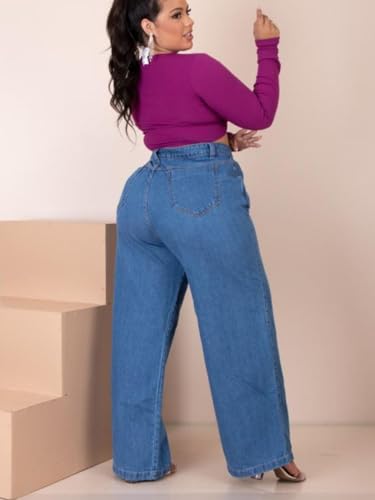 Calça Jeans Wide Leg Feminina, Cintura Alta, Estilo Vintage, Azul Clássico