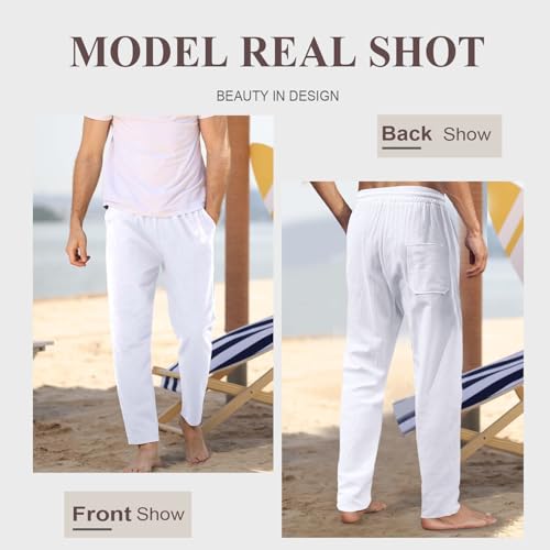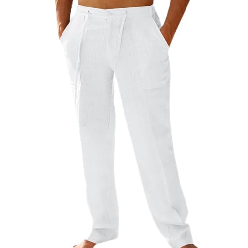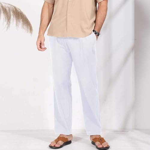 Calça masculina casual de linho - cintura elástica com cordão, ajuste solto e perna reta