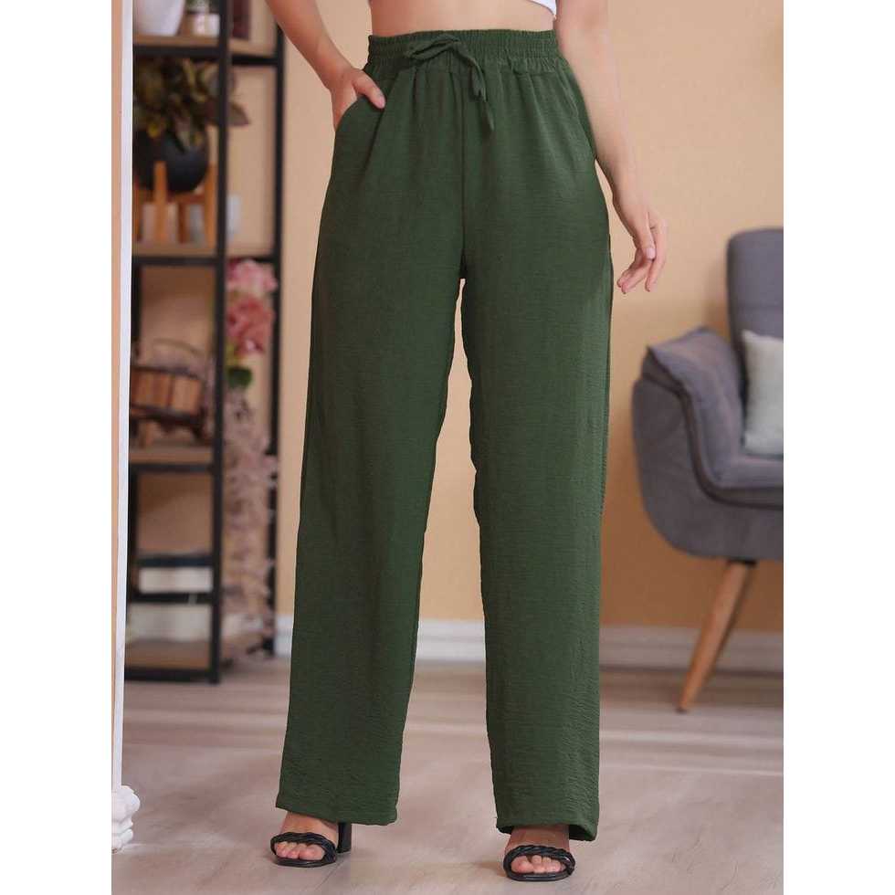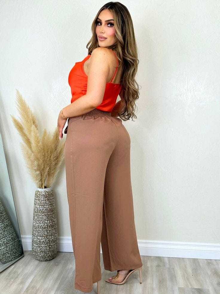 Calça Pantalona com Elástico Na Cintura Com Bolsos laterais Cintura Alta