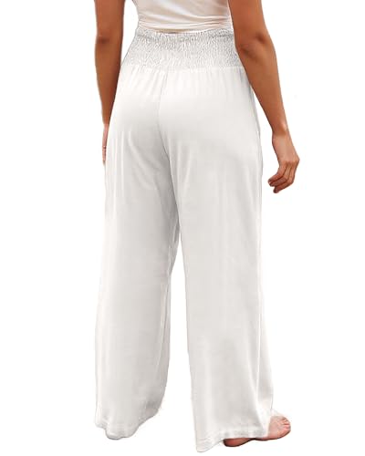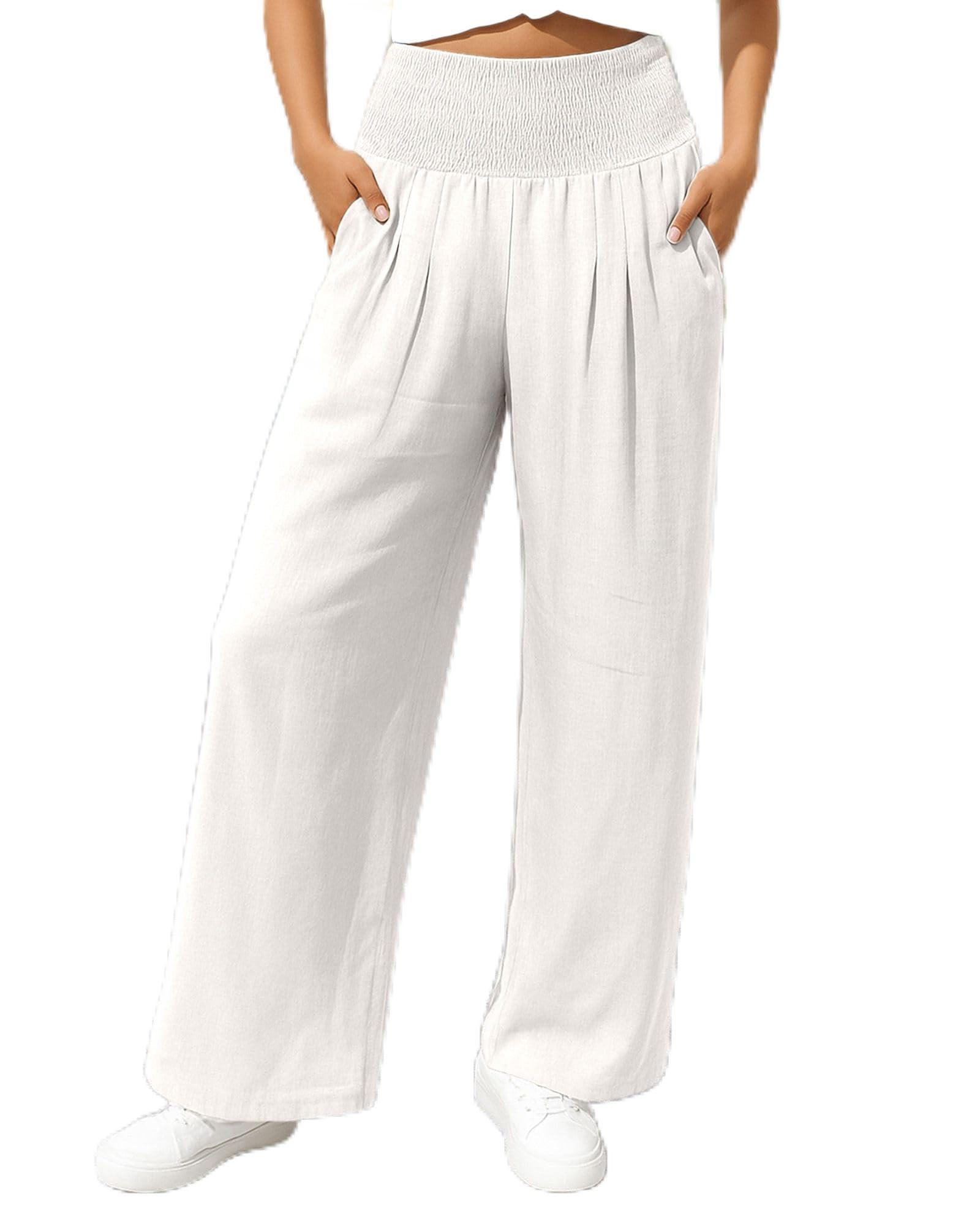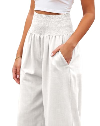 Calça comprida feminina com pernas largas e cintura alta, para usar na praia e em viagens e férias.