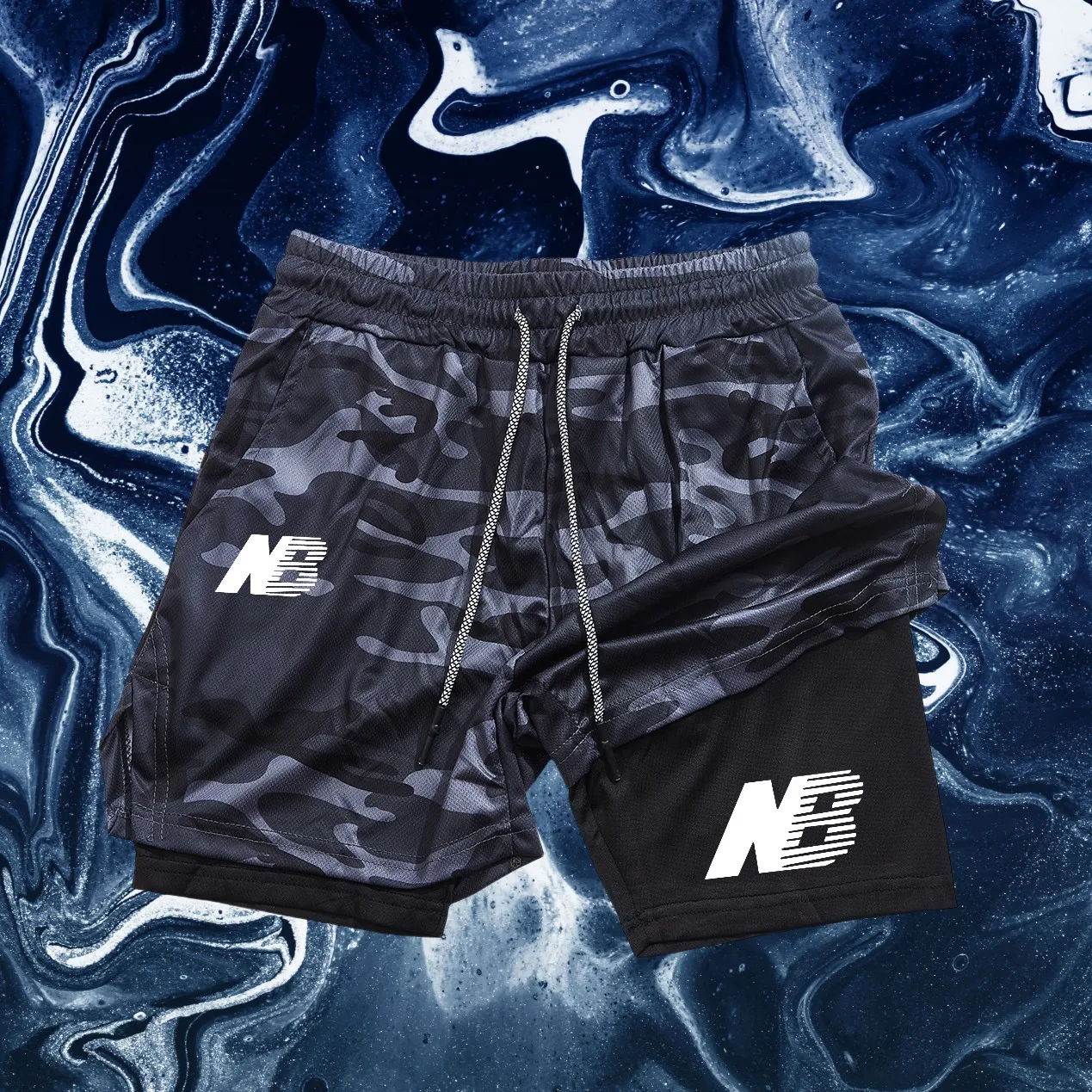 Calções esportivos da moda masculina quatro estações correndo roupas esportivas apertadas dupla camada 2 em 1 calções esportivos