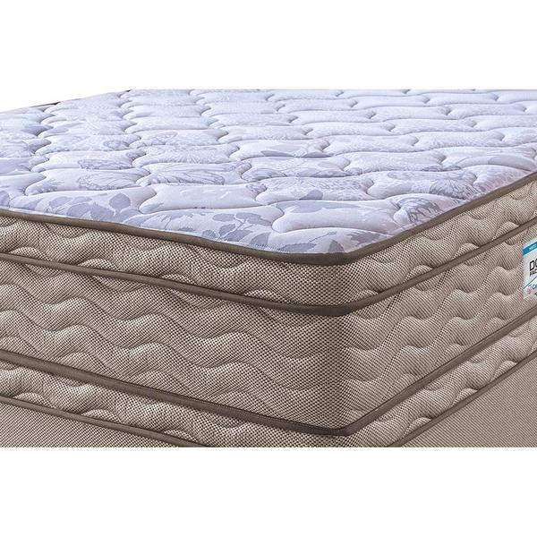 Euro Pillow Duplo: Significa ter um travesseiro Quadrado gigante em cima e embaixo do colchão. O Euro Pillow Duplo é uma camada alta e reta presa ao colchão confeccionado em tecido matelasse bordado e com espuma soft. Tem a aparência de um outro colchão preso ao próprio. Esse Colchão possui Euro Pillow Duplo e tem a beleza das linhas clássicas, aliada à tradição e tecnologia.