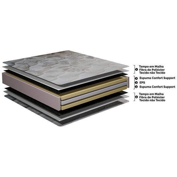 Ortopédico: Sua estrutura é feita e revestida de espuma, fazendo com que a coluna fique reta e evite pontos de pressão no corpo. Por conta desse sistema, ao dormir nesse colchão, as chances de você acordar de madrugada por desconforto e dores musculares são mínimas. Esse colchão oferece, então, a superfície ideal para descansar bem e ter mais qualidade de vida.