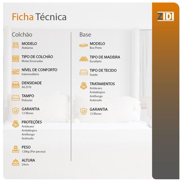 Cama Box Solteiro Preto + Colchão Molas Ensacadas Alabama 88x188x61cm - Zidi