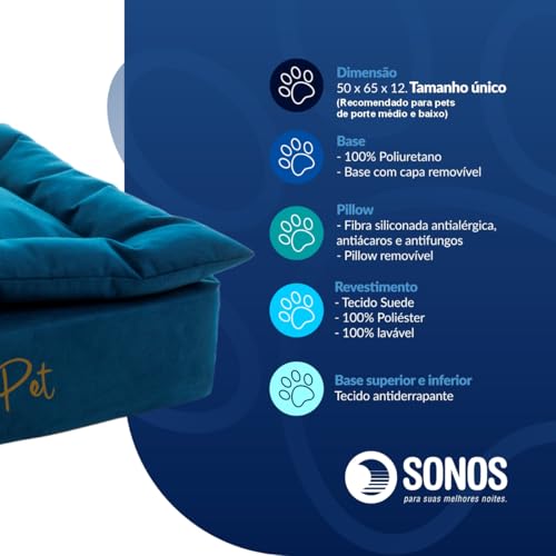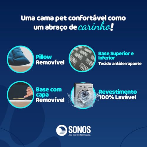 Conforto que acolhe, carinho que protege! Apoio onde seu pet precisa, bem-estar como ele merece. A Sonos é uma marca brasileira especializada em conforto desde 2008. Fundada em Vitória da Conquista (BA), com DNA catarinense, atua com foco em inovação, bem-estar e qualidade. Com mais de 17 anos de história, desenvolve produtos que aliam ergonomia, durabilidade e excelente custo-benefício inclusive para os momentos de descanso dos seus melhores amigos. A Cama Confort Pet Sonos oferece maciez, proteção e segurança em cada detalhe. Seu pillow removível com enchimento de fibra siliconada é hipoalergênica, antiácaros e antifungos. A base em espuma de poliuretano garante sustentação confortável, enquanto o revestimento em suede proporciona toque suave e alta resistência. E o melhor: toda a capa é lavável, com parte inferior antiderrapante que evita escorregões em pisos lisos. Compacta, bonita e funcional, é ideal para pets de pequeno e médio porte que merecem um lugar especial para descansar.