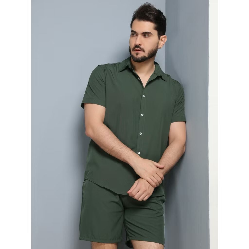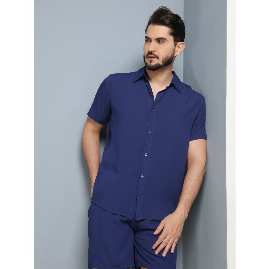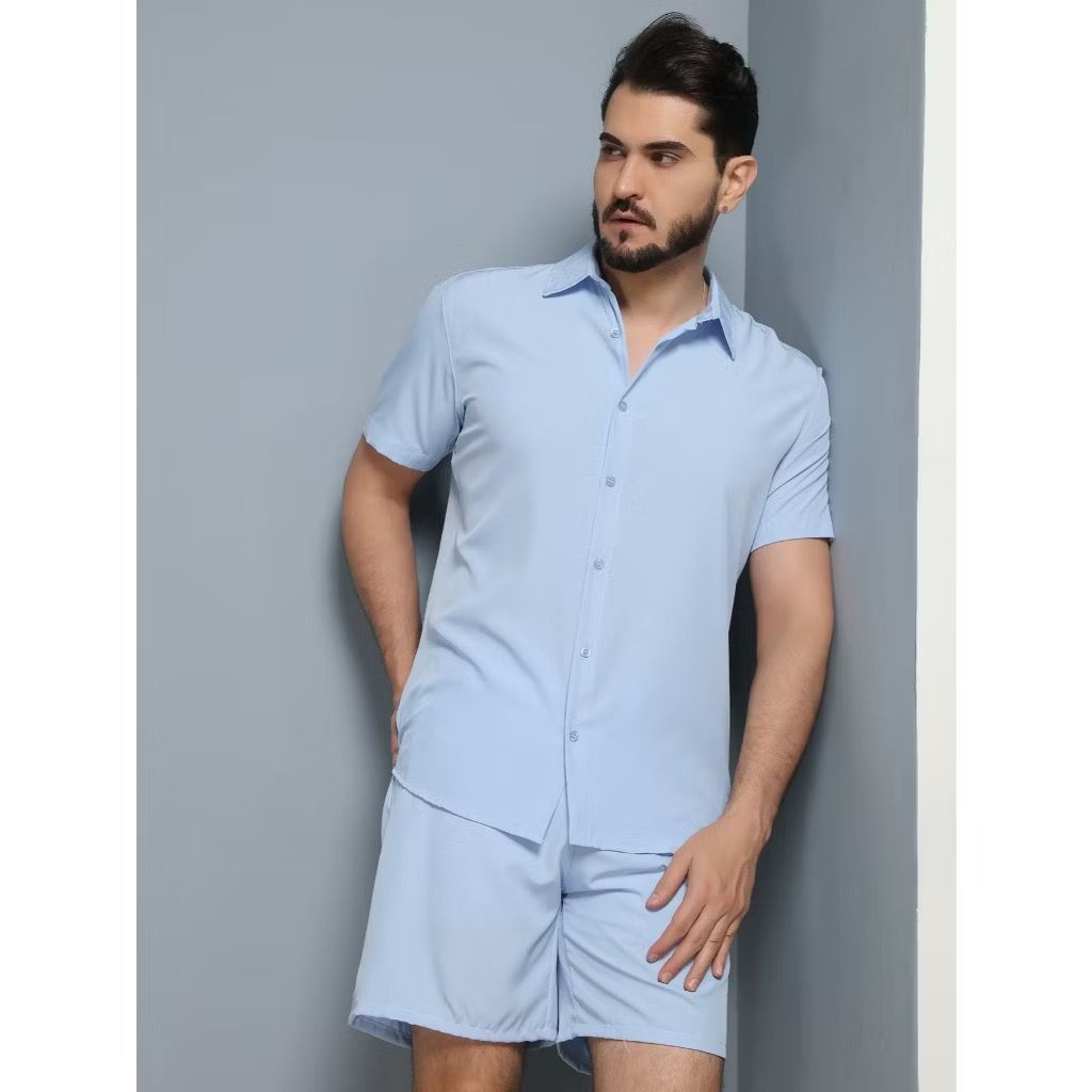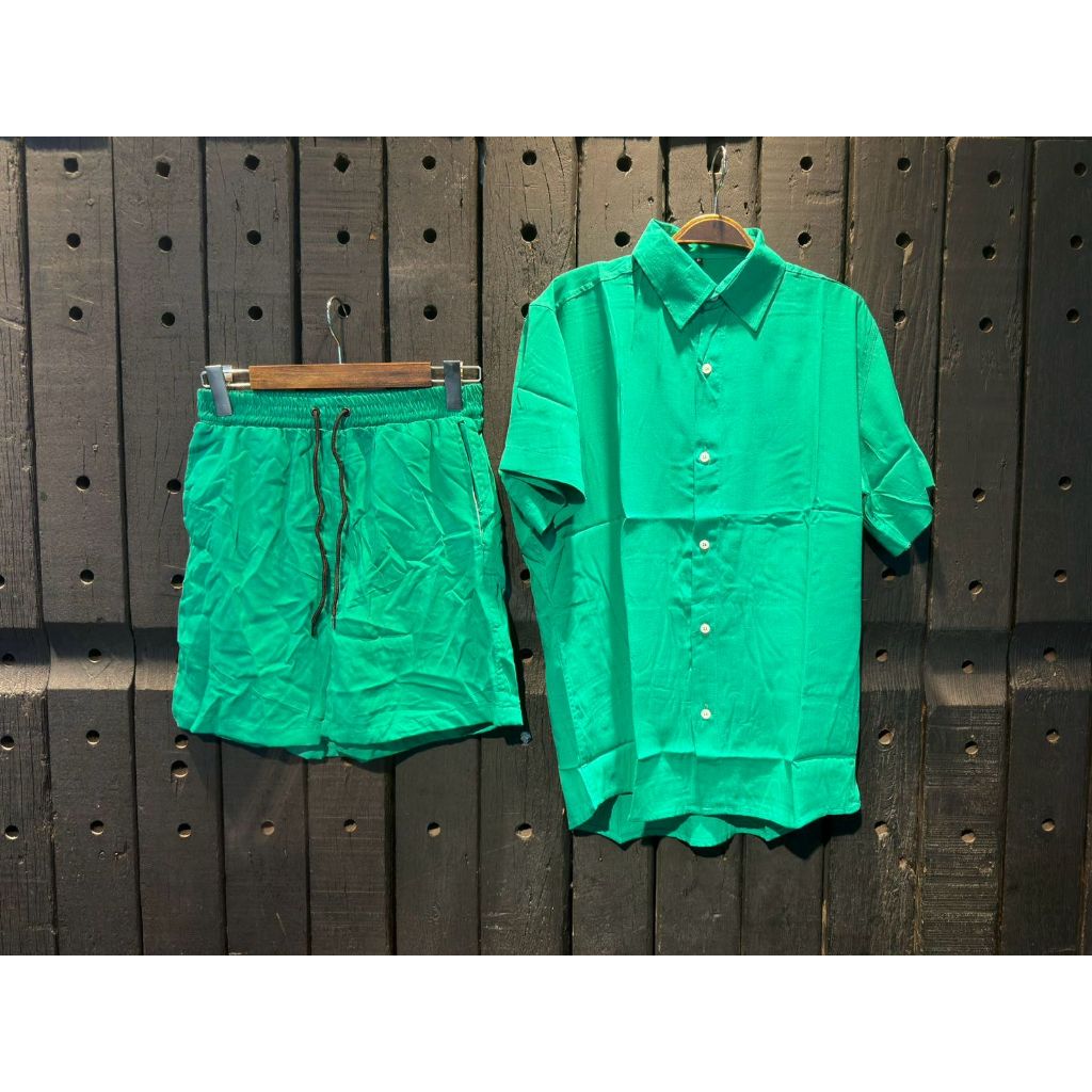 Camisa Conjuntos listrada e lisa masculina slim fite Manga curta férias na praia viscolinho