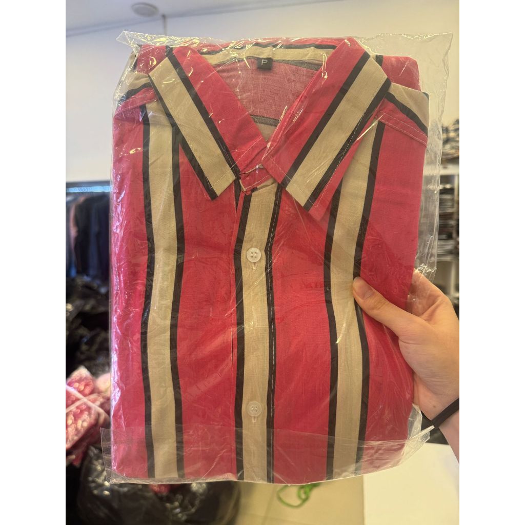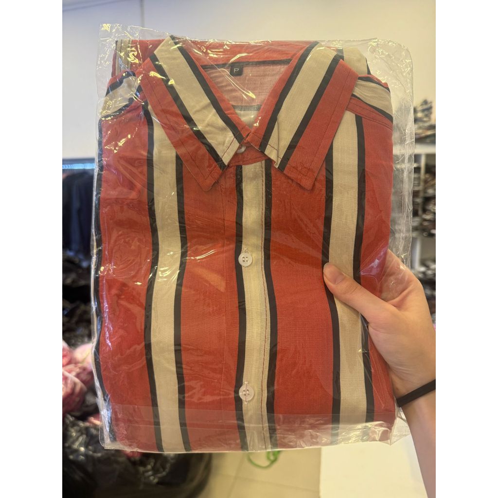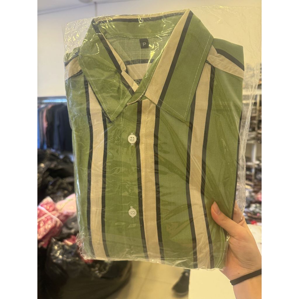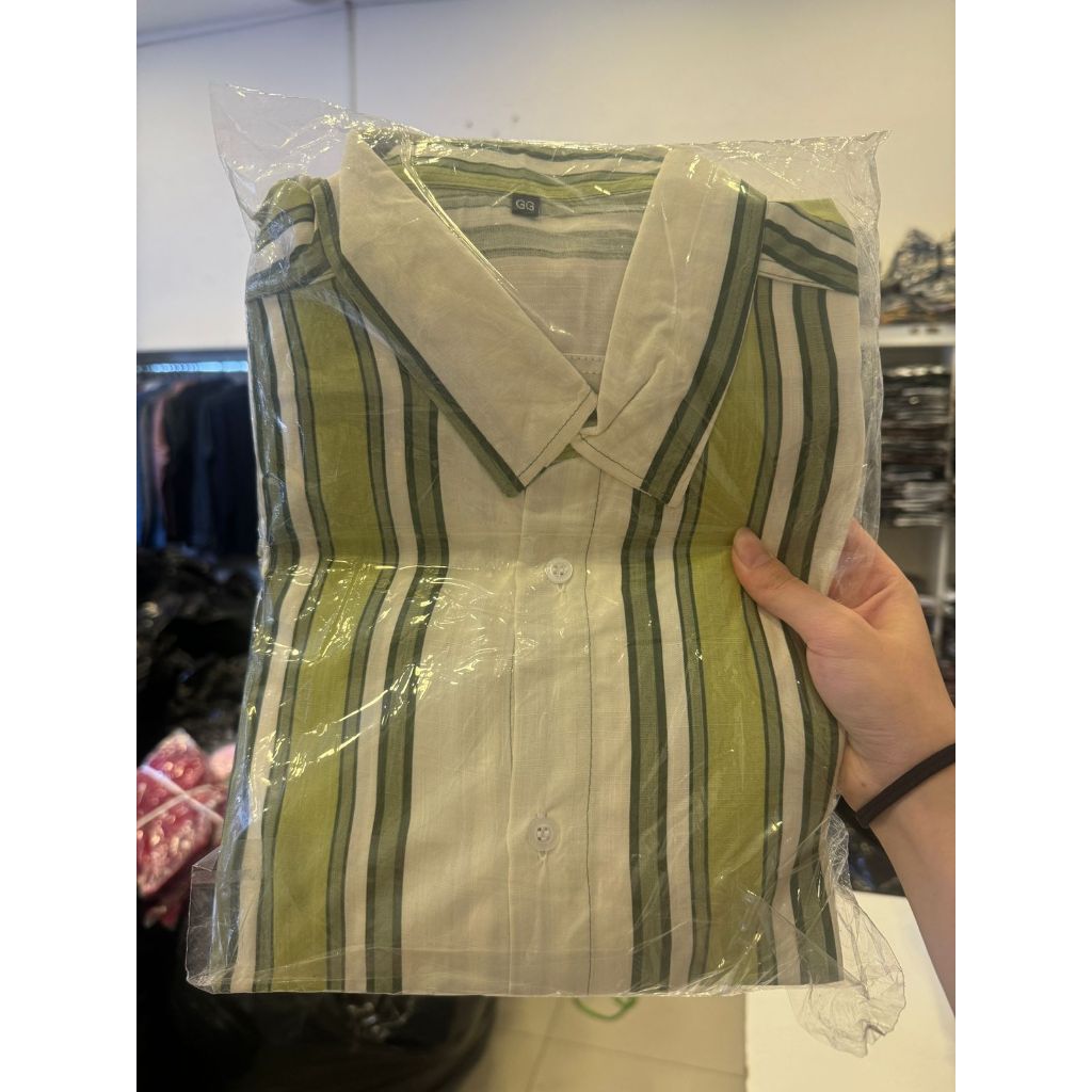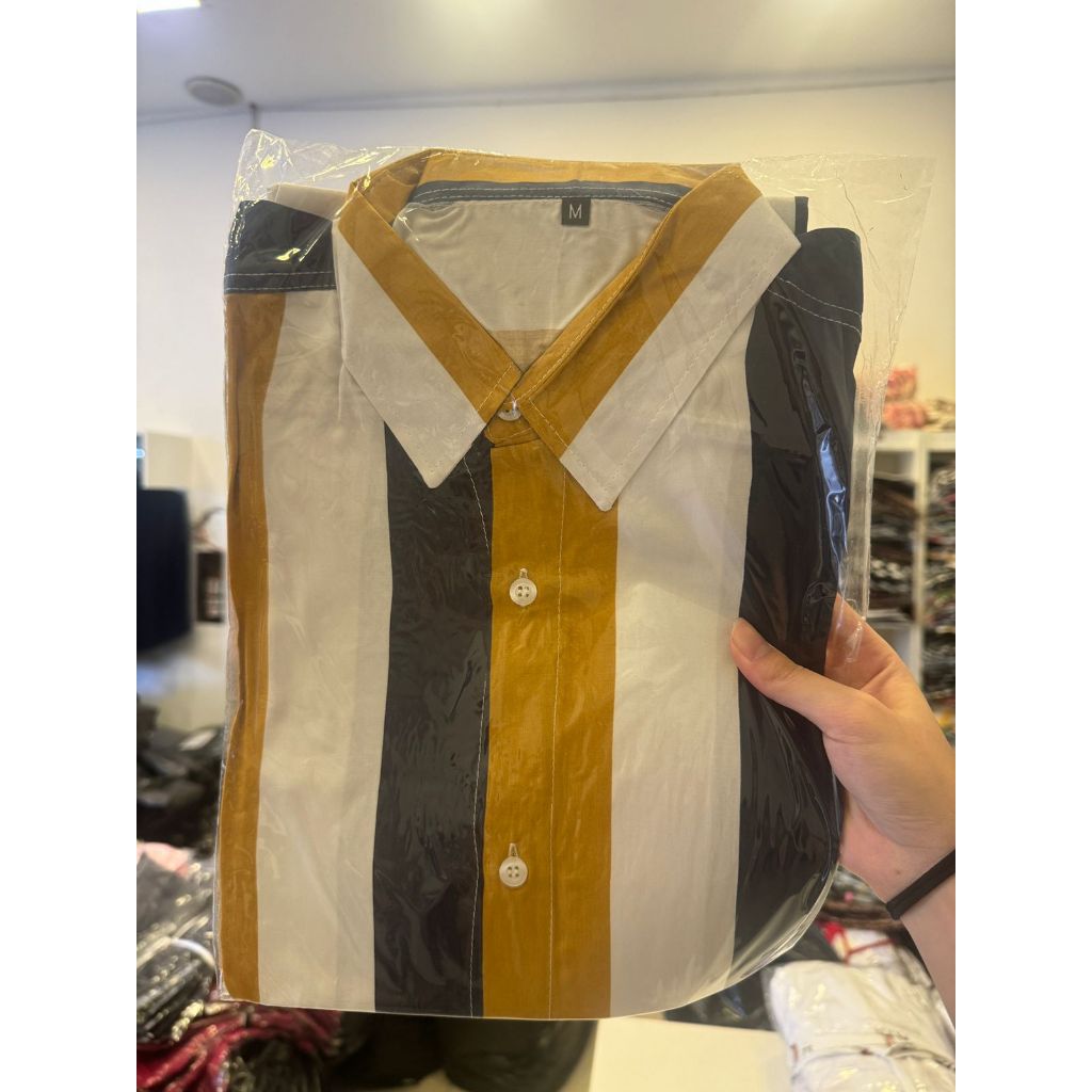 Camisa Conjuntos listrada e lisa masculina slim fite Manga curta férias na praia viscolinho