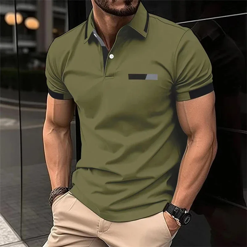 Camiseta esportiva casual de fitness masculina, camisa polo elástica de manga curta para esportes de corrida de academia, top de lapela, camiseta justa masculina