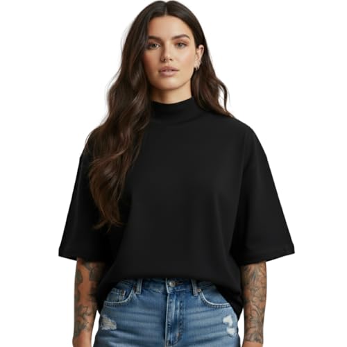 Camiseta Oversized Unissex 100% Algodão Premium Fio 30.1, Camisa Larga Streetwear, Conforto Sem Etiqueta, Gola Alta