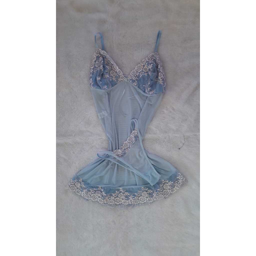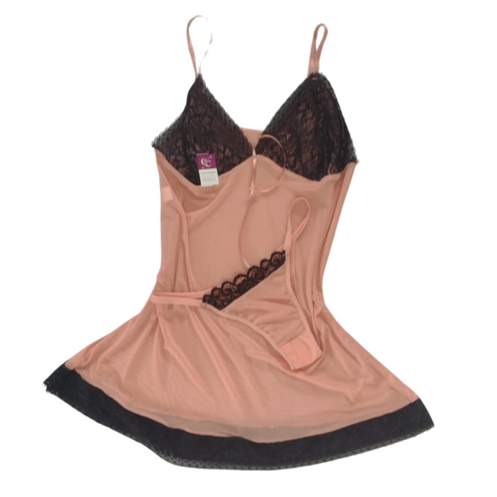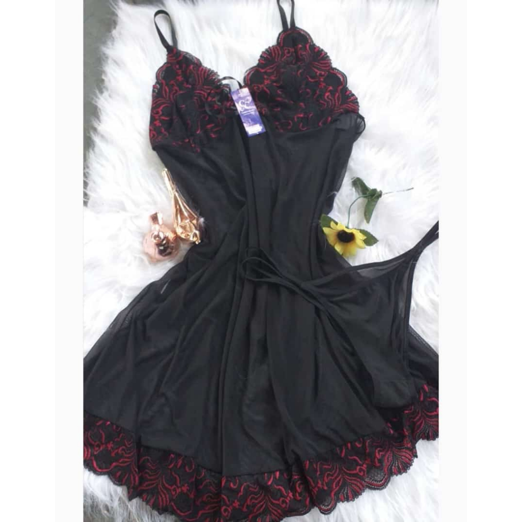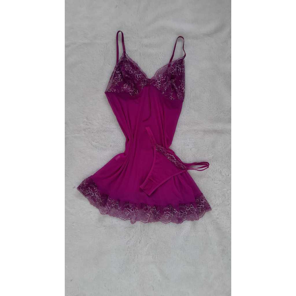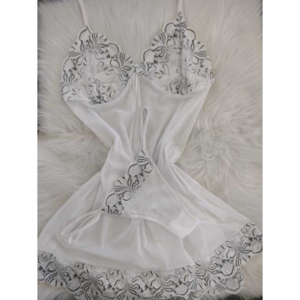 Camisola PLUS SIZE feita em Tule Transparente - Acompanha Calcinha