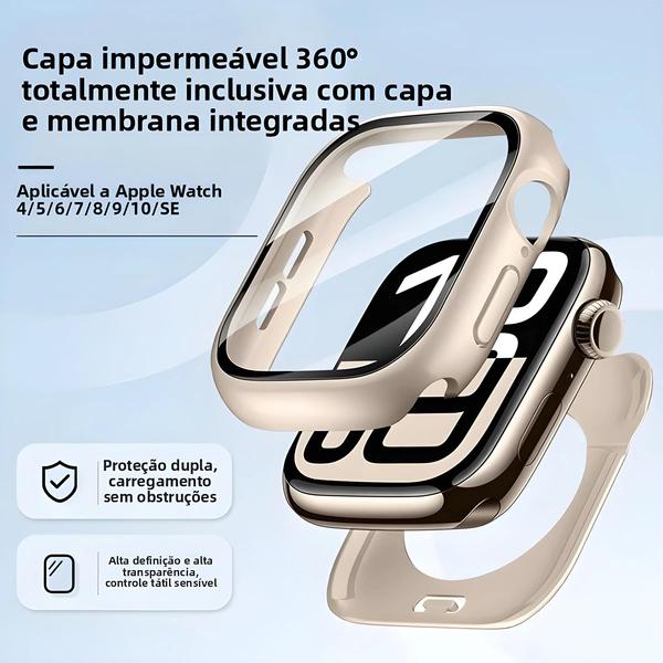 experimente total tranquilidade com nossa capa totalmente à prova d'água 360, garantindo que seu Apple Watch esteja protegido contra água, poeira e arranhões.