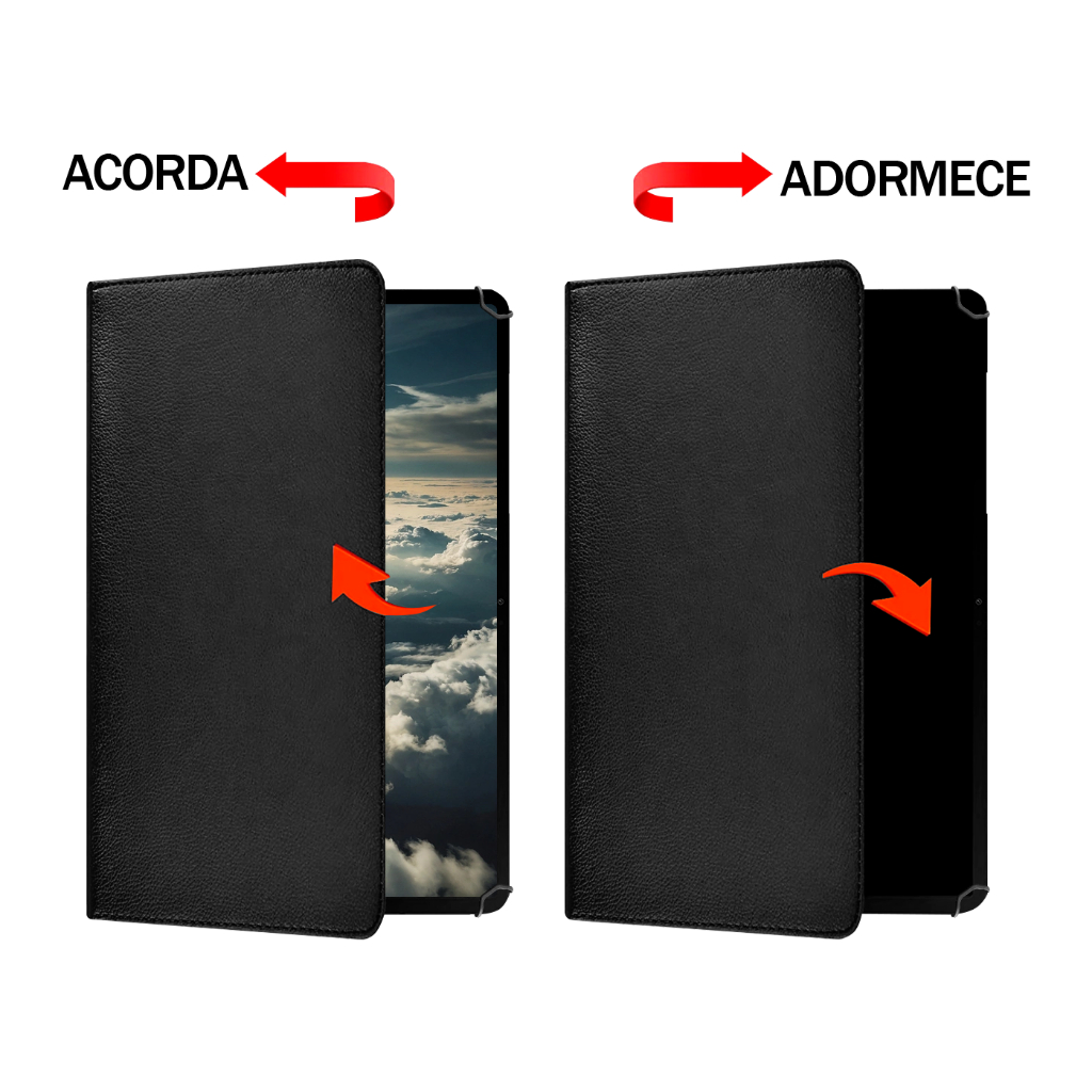 • Rotação 360° e suporte inclinável: permite girar e posicionar o tablet em diferentes ângulos, oferecendo mais conforto para leitura, vídeos, chamadas ou trabalho.