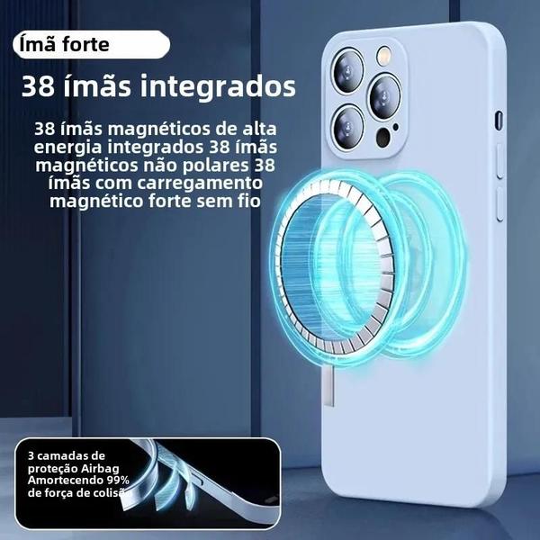 Capa MagSafe Magnética de Silicone para iPhone 15/14/13/12/11 - Pro, Max e Mini