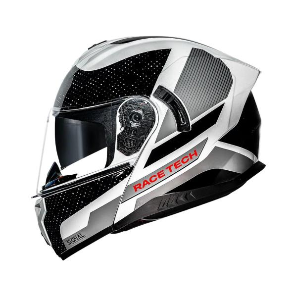 Capacete Articulado Race Tech Signal Preto Branco Com Oculos