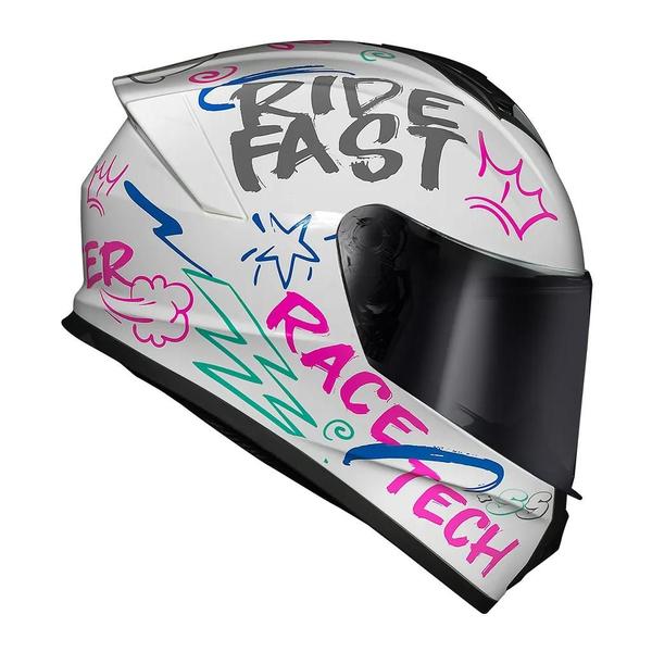 01- Capacete Race Tech Hit Faster White Pink, com viseira original Cristal, não Fumê